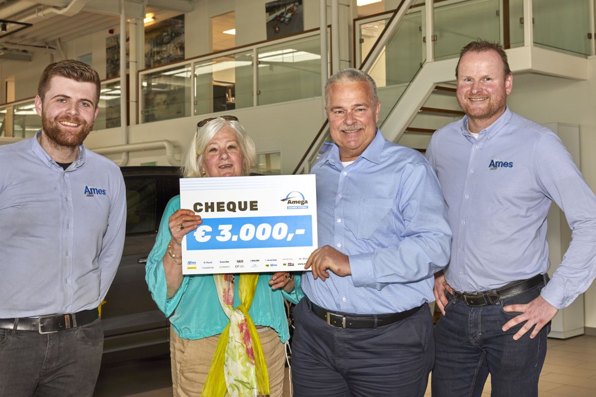 De aanleiding voor de schenking was dat diverse autobedrijven waarmee Amega in onze regio actief is landelijke prijzen wonnen. Dit was het resultaat van samenwerking en betrokkenheid binnen de gehele dealergroep: Amega Samen Sterk! Het bedrijf is trots op deze prijzen en gelooft in het delen van succes.